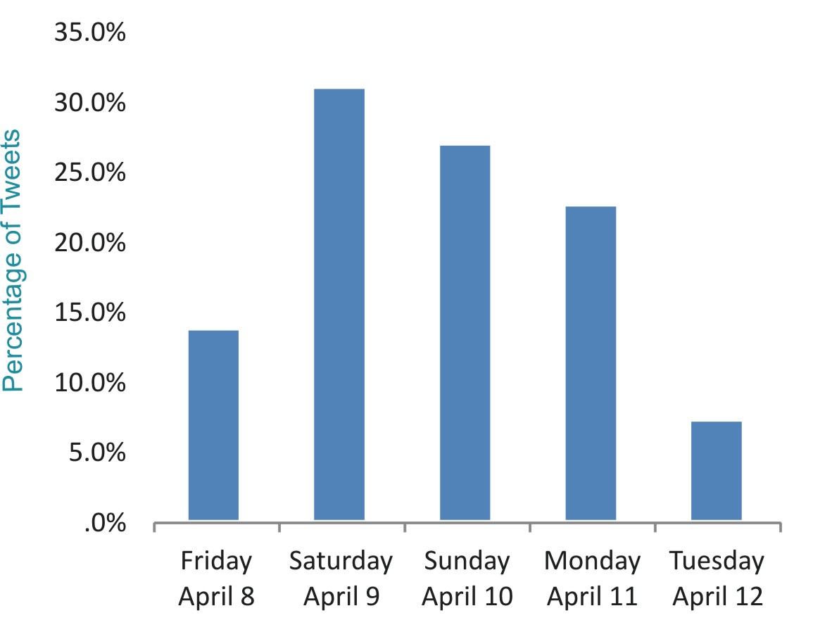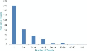 Perhaps not surprisingly, Saturday was the busiest with 30.7% (396) of the overall tweets for the conference.