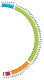Each of these coloured levels of achievement are comprised of two parts: a segment which forms the outside boundary of the circle (tick marks provide a reference to the number of students the segment represents) and a ribbon which connects the Primary Assessment (left side of the circle) to the Junior Assessment (right side of the circle).